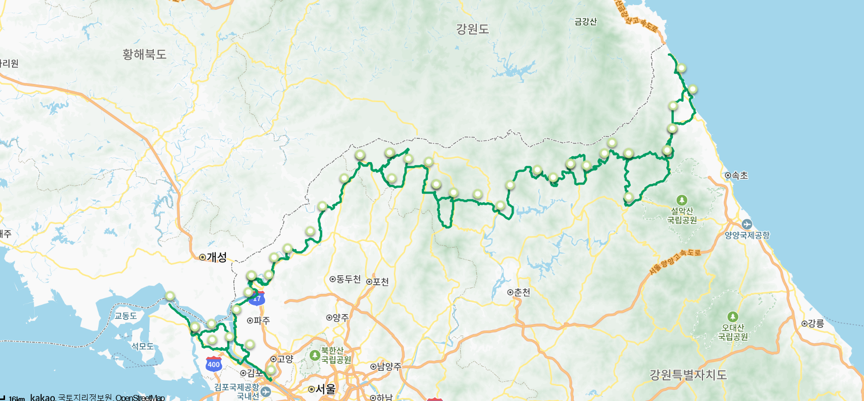 DMZ 일대를 따라 구축한 총 35개 코스, 510km의 걷기여행길입니다.