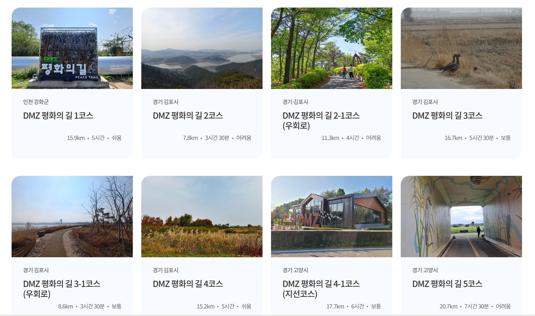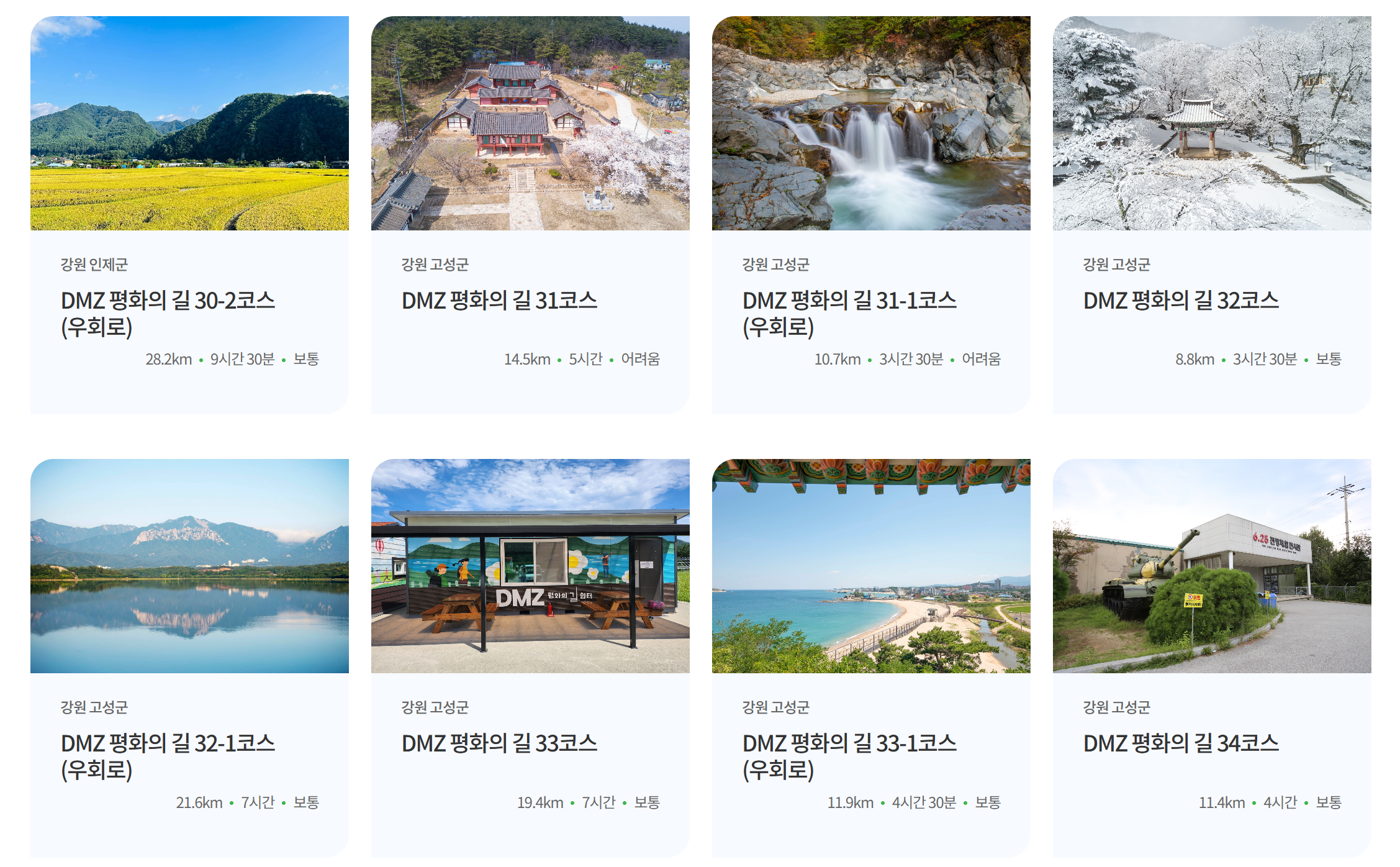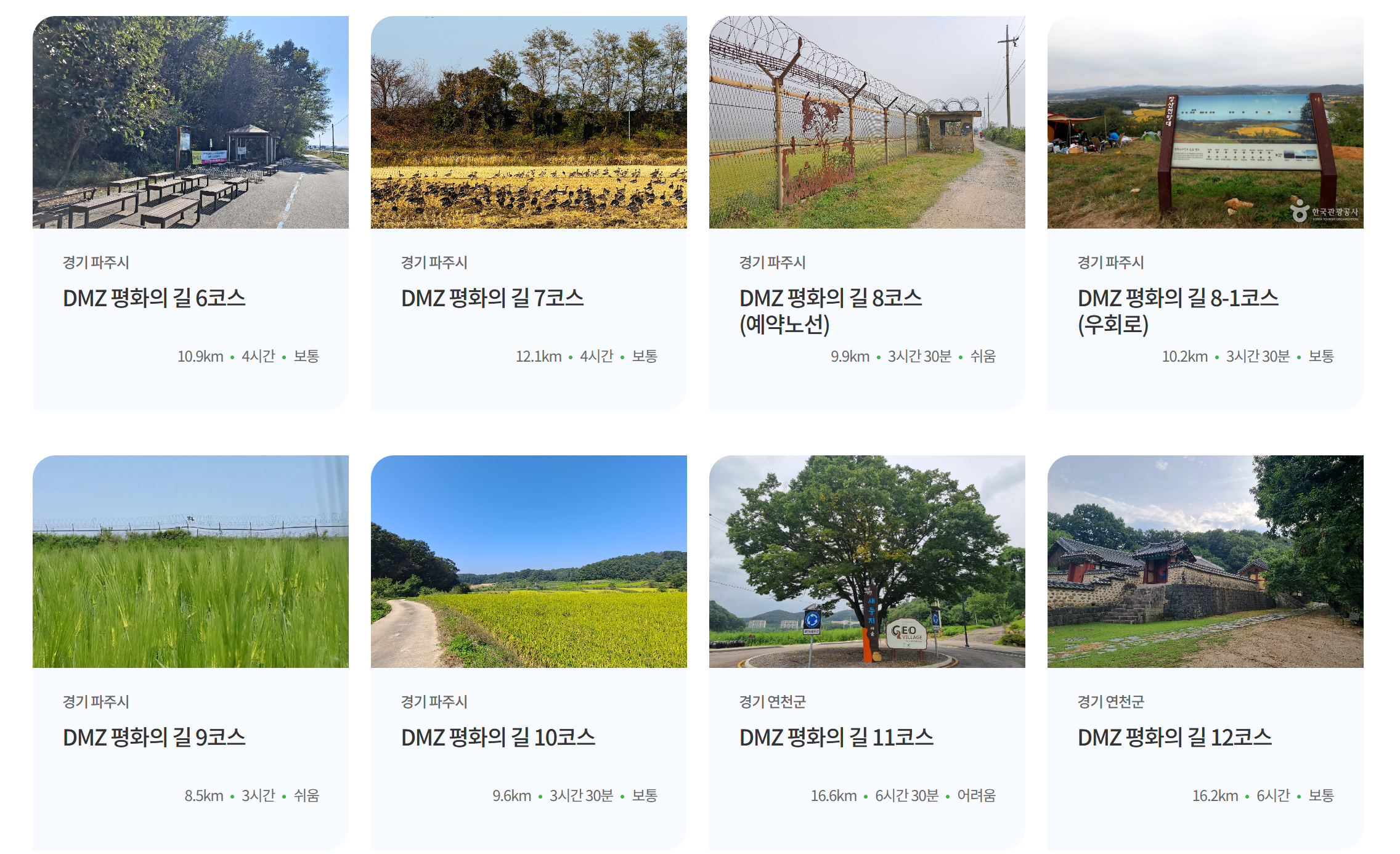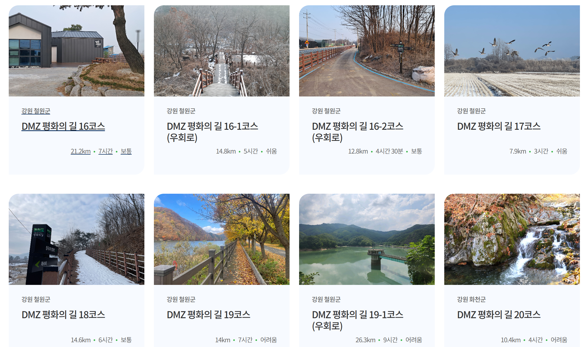 DMZ 평화의 길은 자유롭게 방문 가능한 횡단노선과 투어 예약 후 방문가능한 테마노선으로 나눕니다.