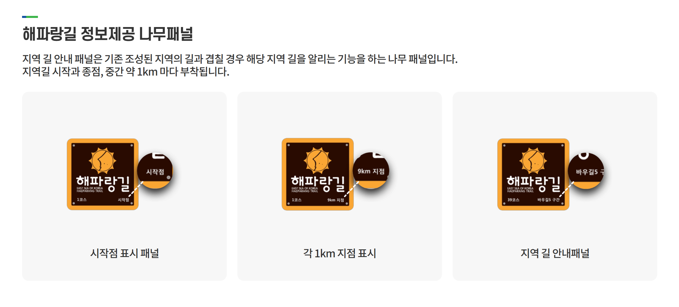 ‘해파랑길’은 부산 오륙도 해맞이공원에서 강원 고성 통일전망대까지 동해안의 해변길, 숲길, 마을길 등을 이어 구축한