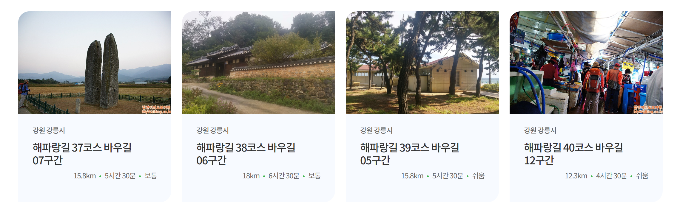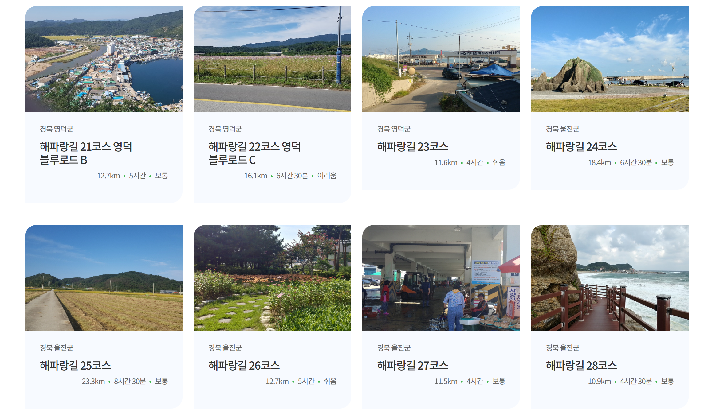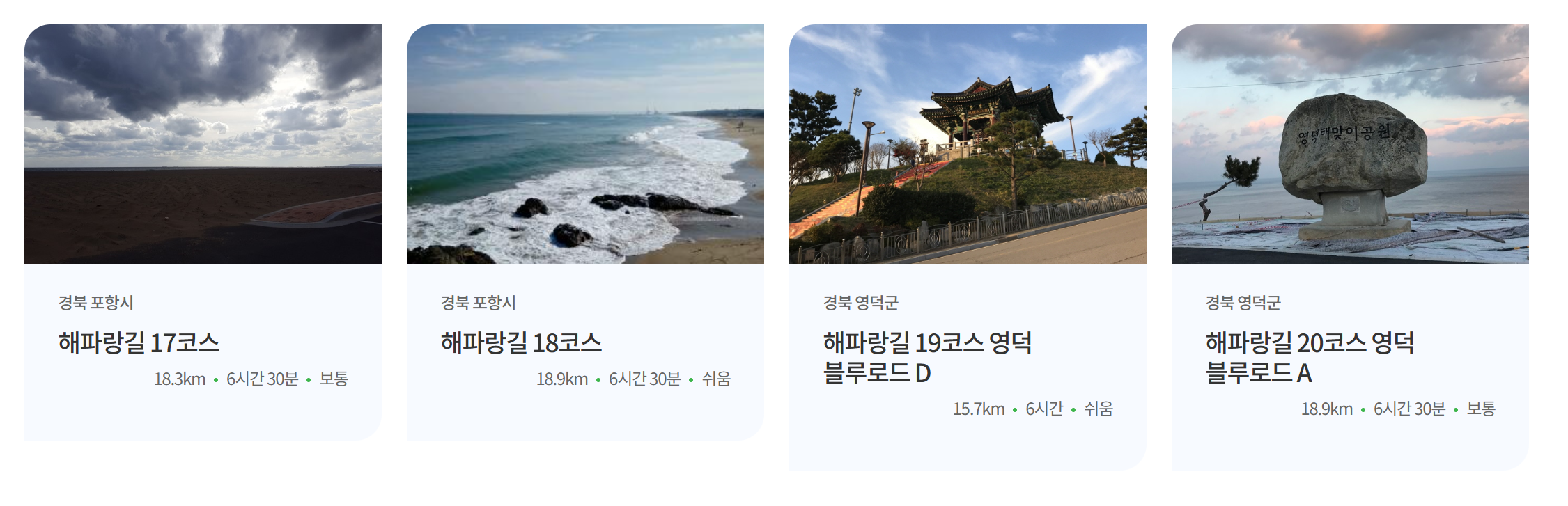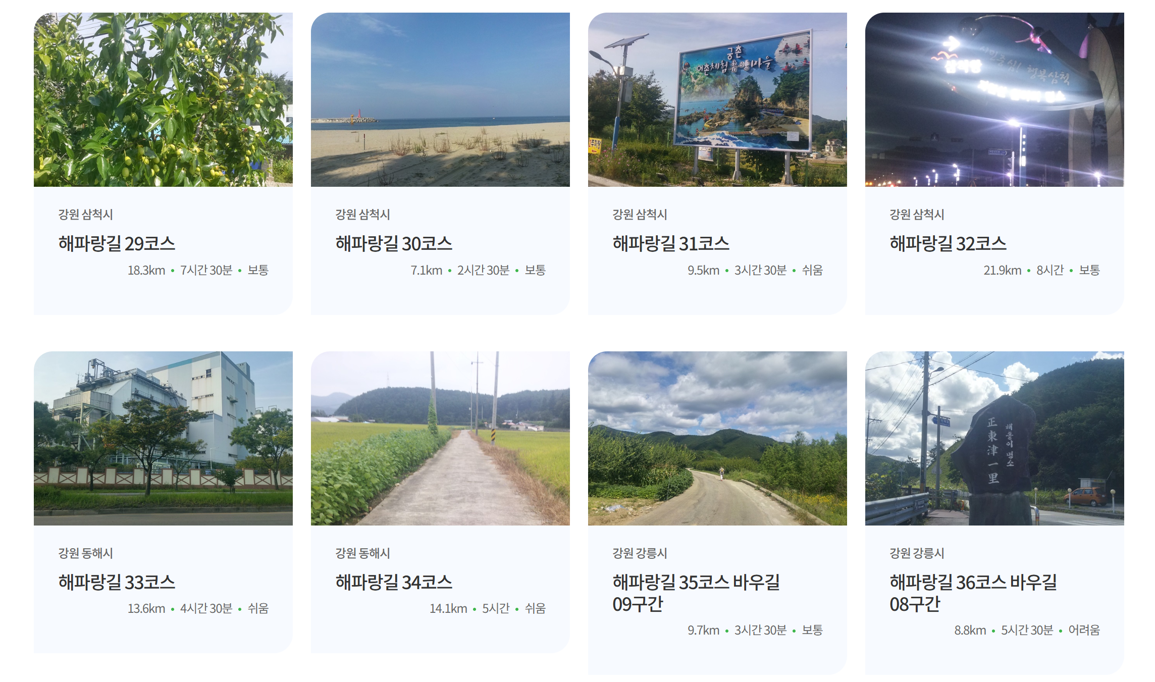 코리아둘레길 동해 '해파랑길' 50개 코스(km,시간,난이도별 정리)