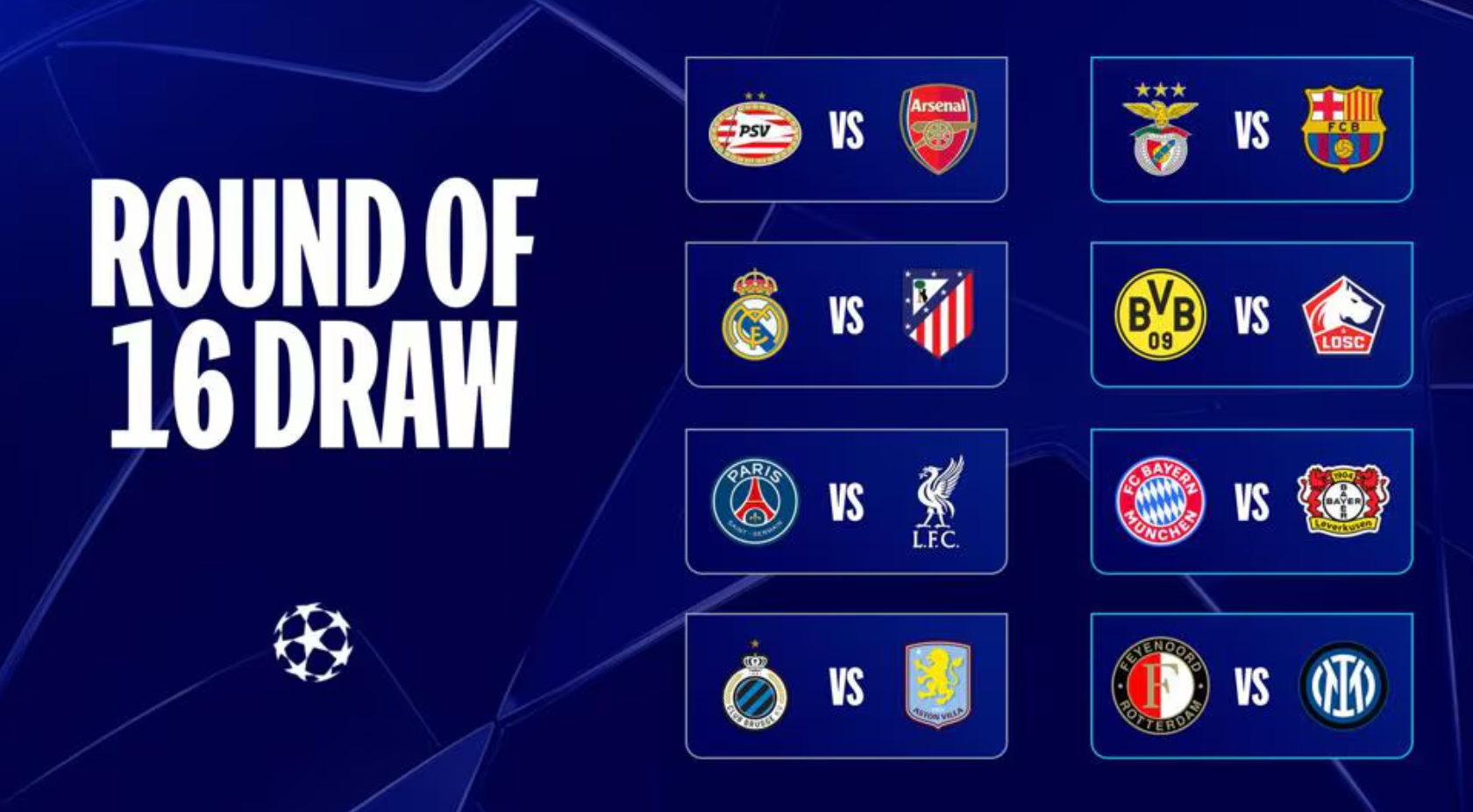 2025 UEFA 챔피언스리그 16강 대진표 및 경기 일정
