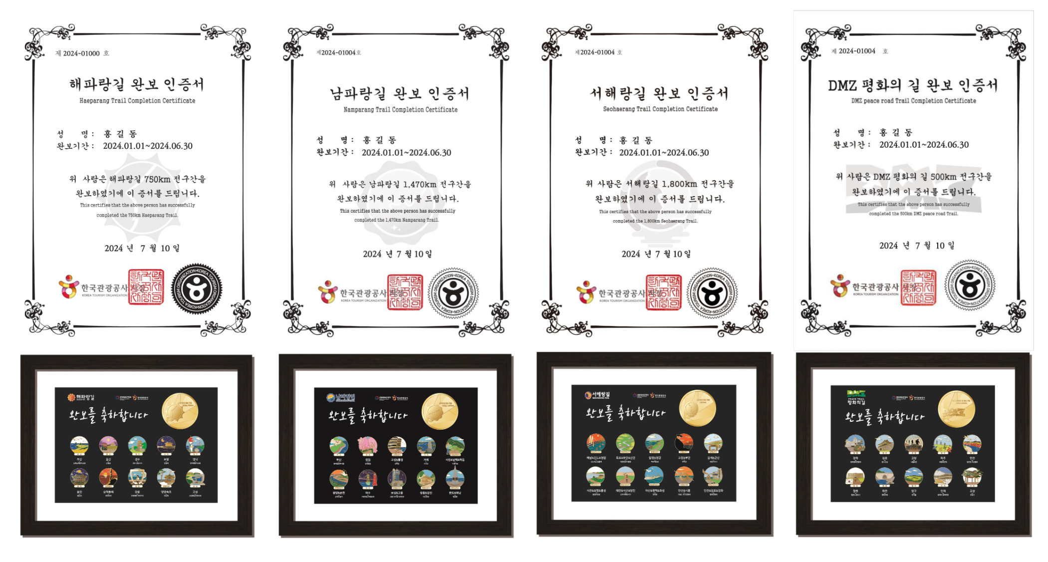 해파랑길, 남파랑길, 서해랑길, DMZ 평화의 길을 완보하신 분께는