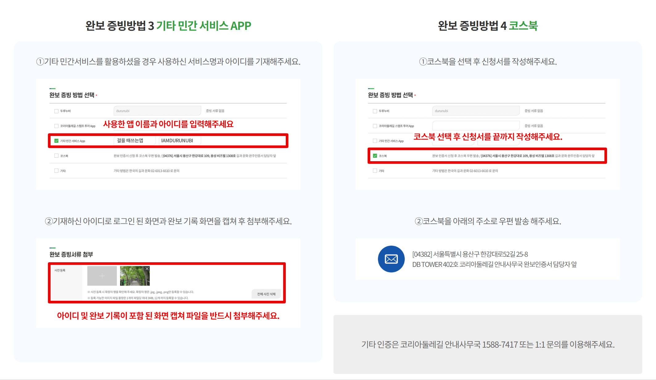 차량 이동 등 부당한 방법으로 스탬프를 확보하신 분에게는 완보인증서 발급에 제한이 있을 수 있음을 알립니다.