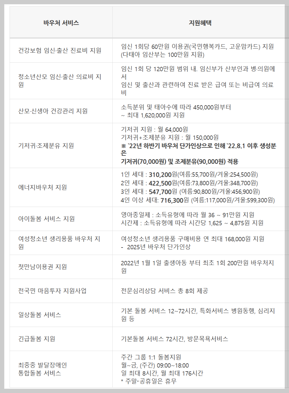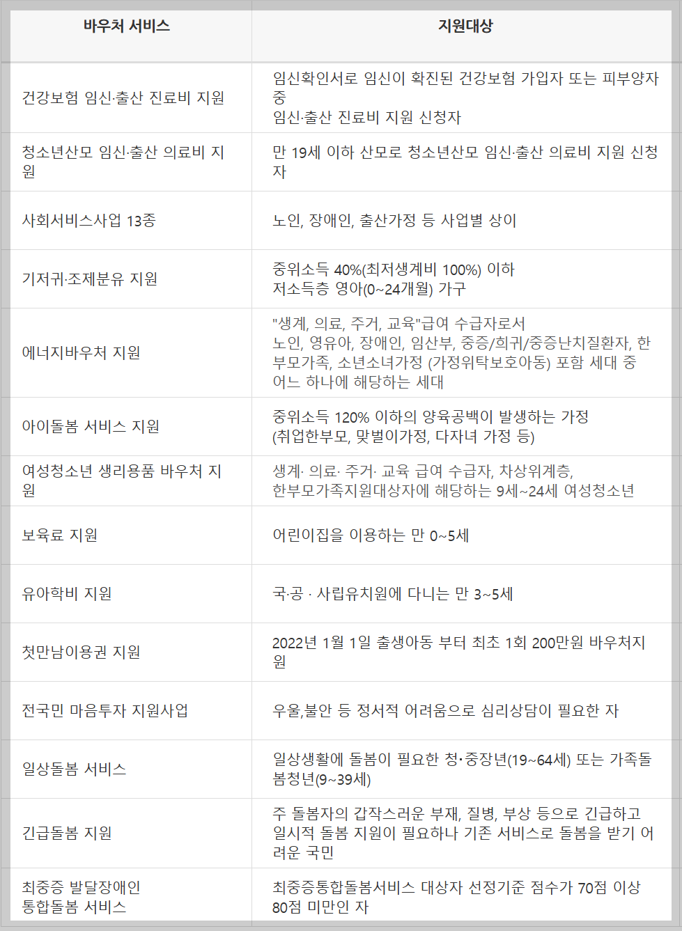 ㅣ바우처 서비스별 지원대상