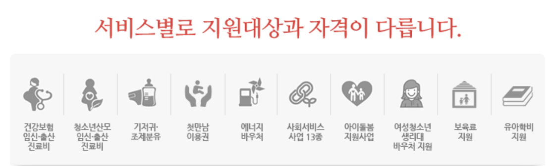 정부 지원으로 산후도우미 서비스를 이용할 수 있는 바우처입니다. 소득기준에 따라 정부 지원금과 본인 부담금이 달라지며, 신청은 보건소 또는 복지로 사이트에서 가능합니다.