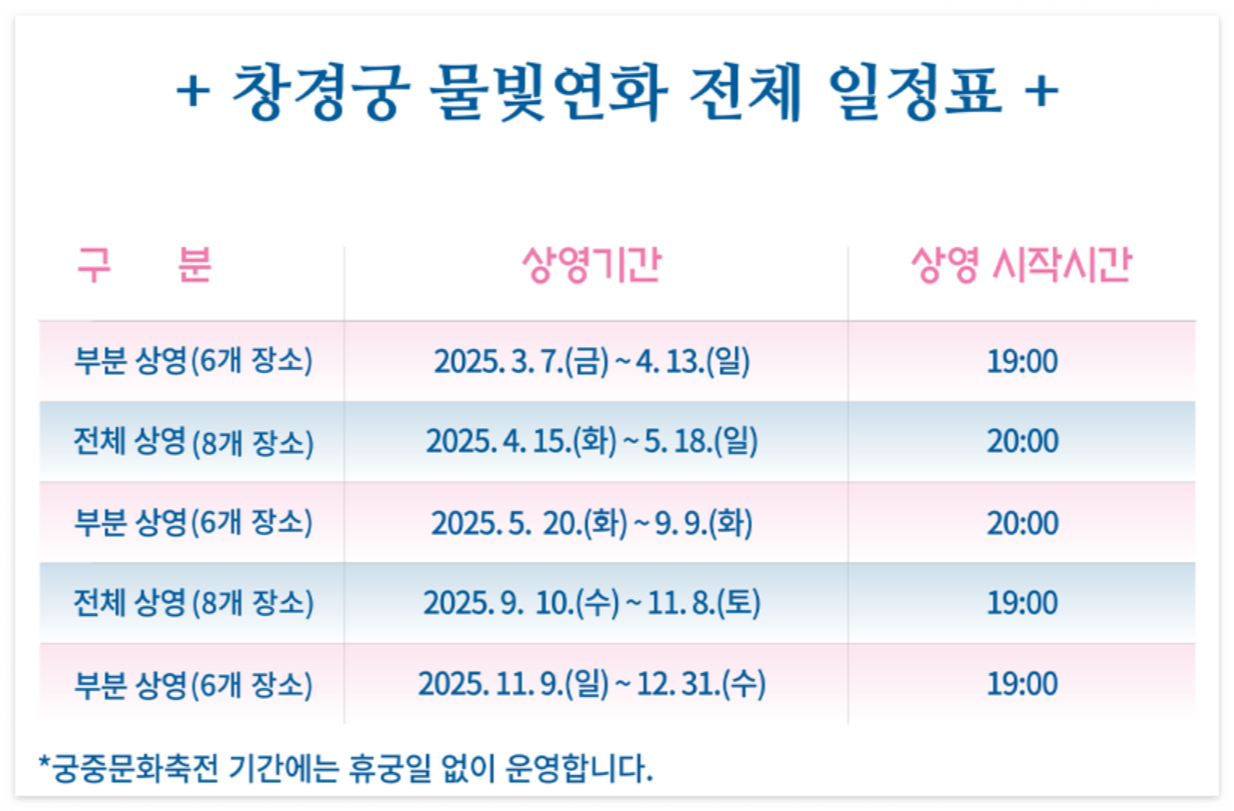 6. 창경궁 물빛연화 전체 일정표