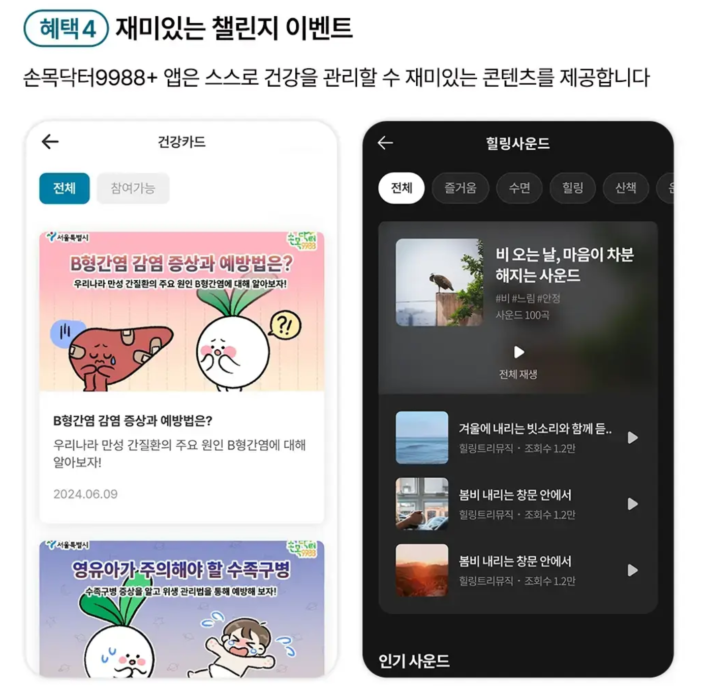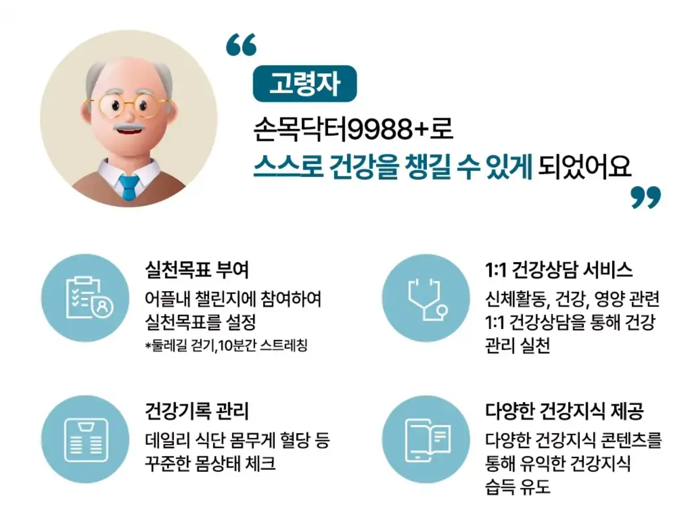 - 신청 방법: 손목닥터 9988 공식 홈페이지 또는 전용 앱을 통해 신청 가능합니다.
