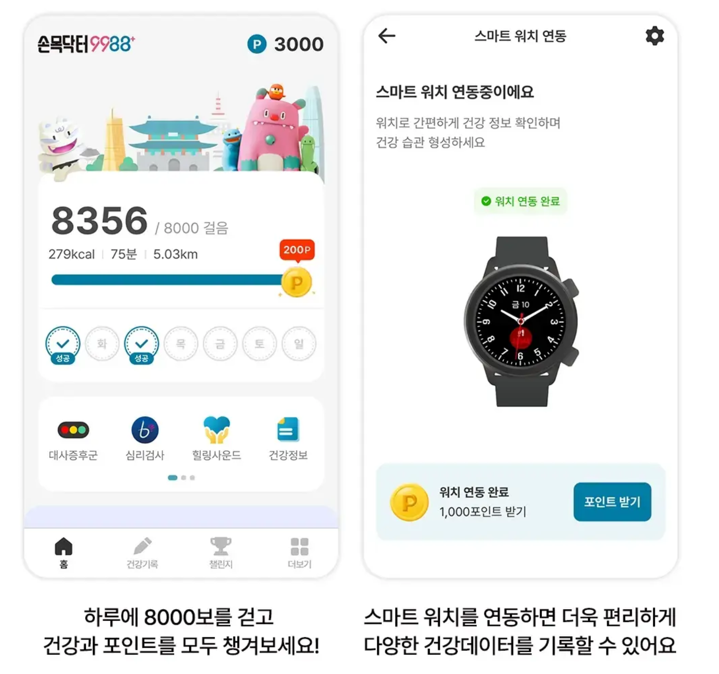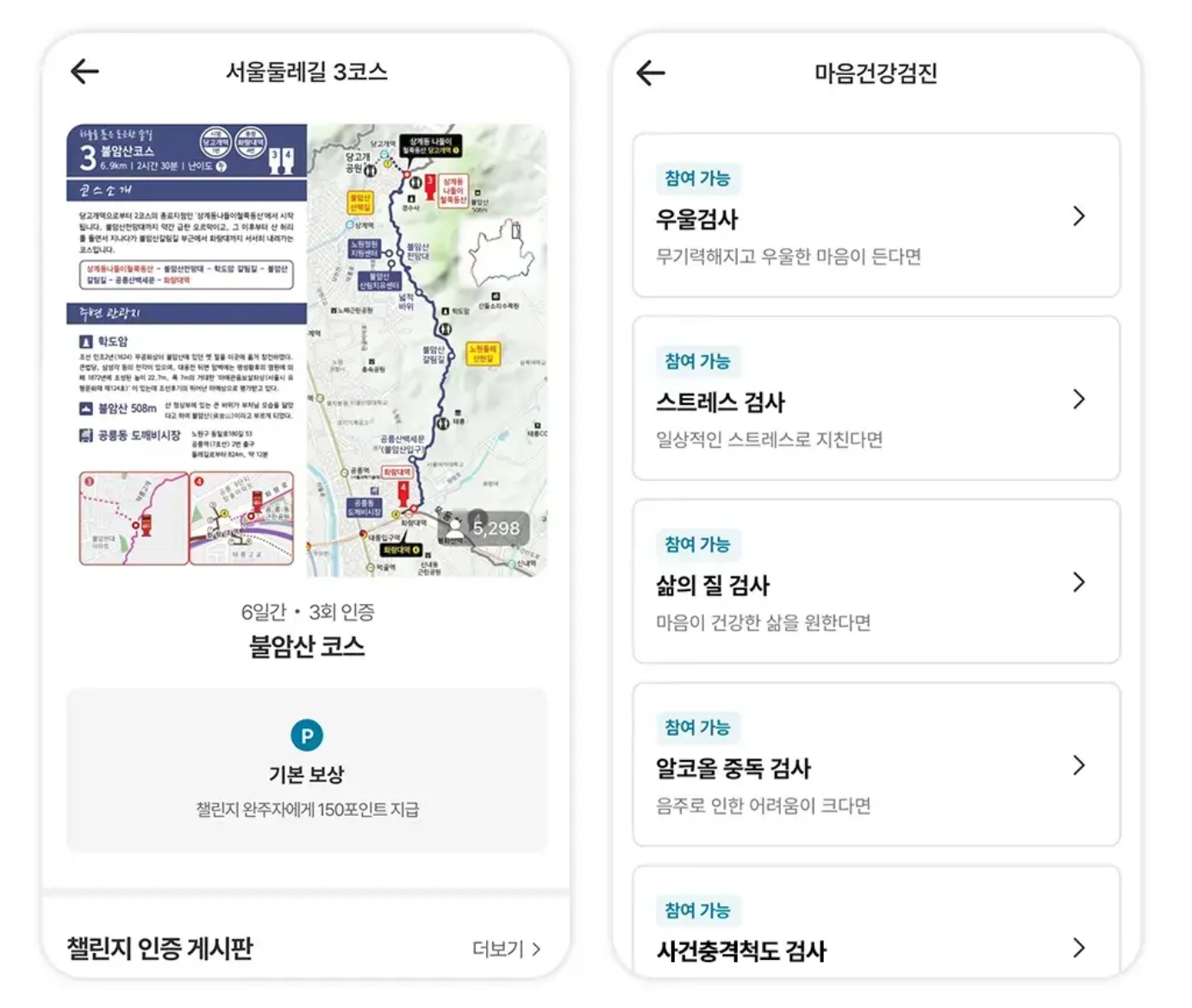 - 건강관리 프로그램: 걷기뿐만 아니라 건강 카드, 식단 관리 등 다양한 건강관리 프로그램을 제공합니다.