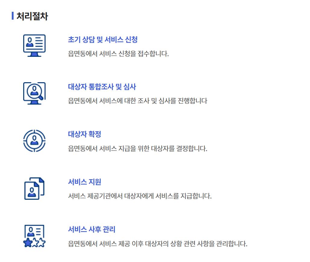 - 서비스 이용: 승인된 경우, 지정된 서비스 제공 기관에서 바우처를 사용하여 서비스를 이용할 수 있습니다.
