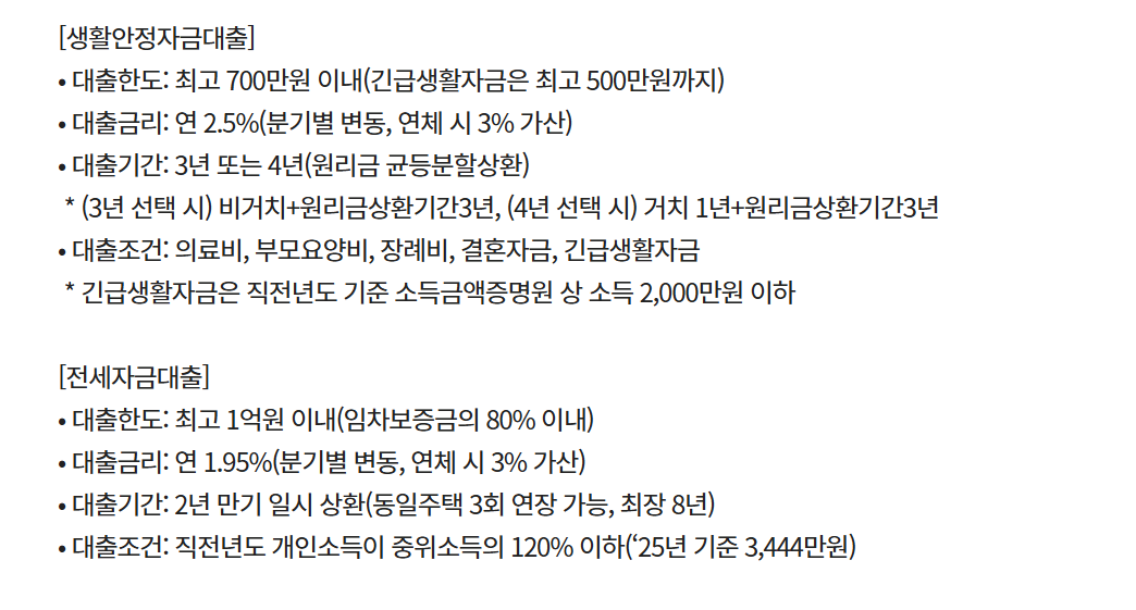 -한국신용정보원의 일반신용정보관리규약에 따라 이상이 없는 경우에만 지급 가능하므로, 신청 단계부터 지급 당일까지 신용도 및 연체 등에 유의 부탁드립니다.