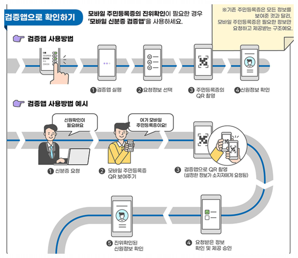 * QR 촬영: 주민센터 방문 → 앱 설치 → QR 촬영 → 발급