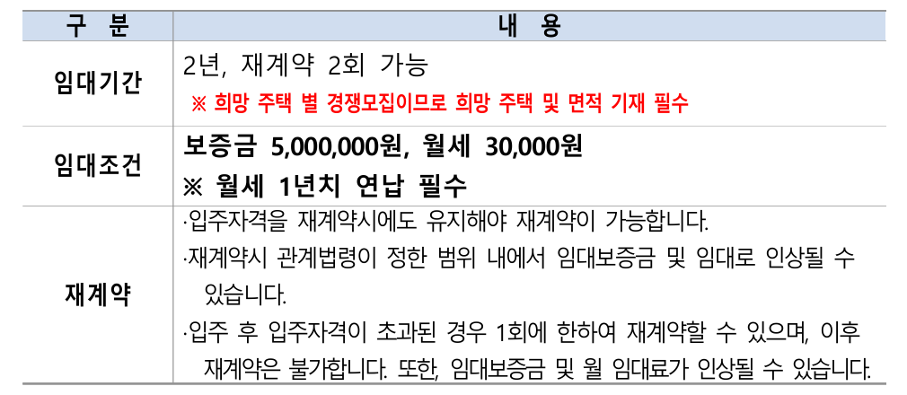 ◎ 신청자격은 입주자모집 공고일부터 입주 시까지 계속 유지하고 있어야 하며, 당첨 후 주택소유 등으로 자격요건이 상실되어 당첨이 취소되거나 계약이 거절될 수 있습니다.
