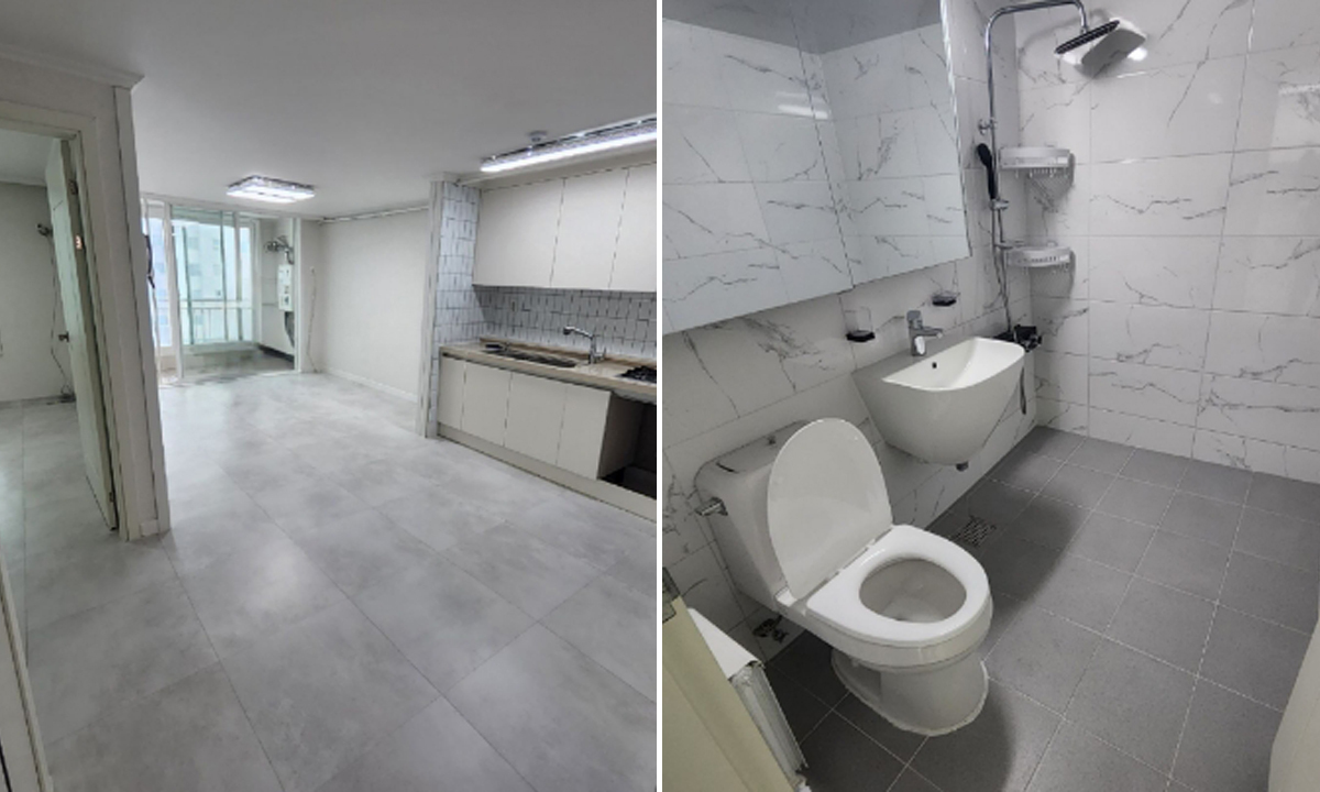 천원주택은 명천동과 대천동에 위치한 아파트에서 제공됩니다. 아파트 내부는 현대적인 디자인으로 꾸며져 있으며, 넓은 주방과 거실, 세련된 욕실이 갖춰져 있습니다.