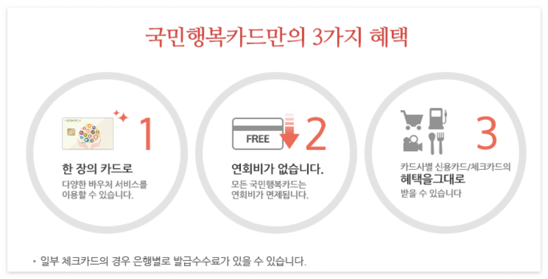국민행복카드는 크게 아래와 같은 경우에 사용됩니다.