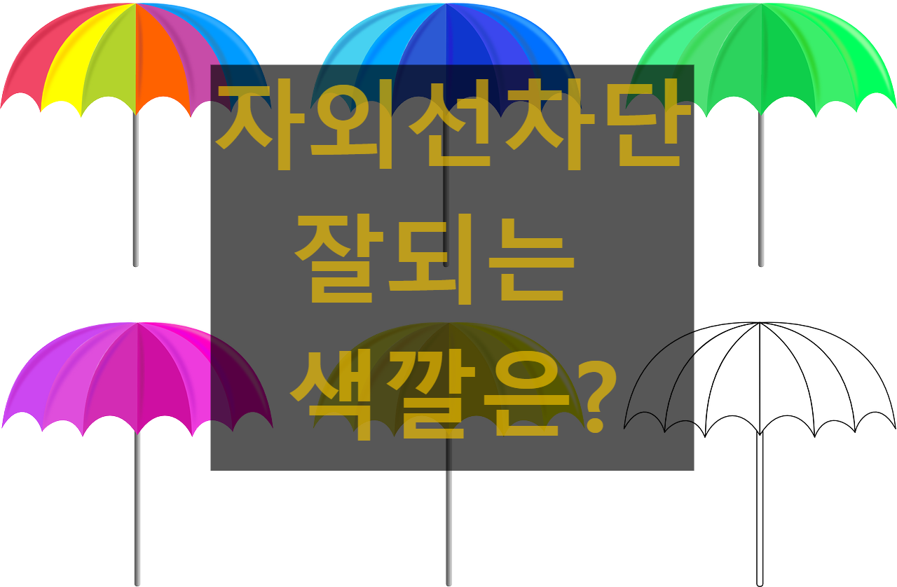 가장 자외선을 잘 차단하는 색상은 검정색입니다. 어두운 색상은 빛을 흡수하기 때문에 자외선이 피부에 도달하는 걸 줄여줍니다. 특히 검정색, 네이비, 짙은 갈색, 자주색 계열은 자외선 차단 효과가 높다고 알려져 있어요. 단점은 열을 흡수하기 때문에 더위를 느끼기 쉽다는 점이 있지만, 통기성이 좋은 소재를 고르면 이 단점을 어느 정도 보완할 수 있습니다.