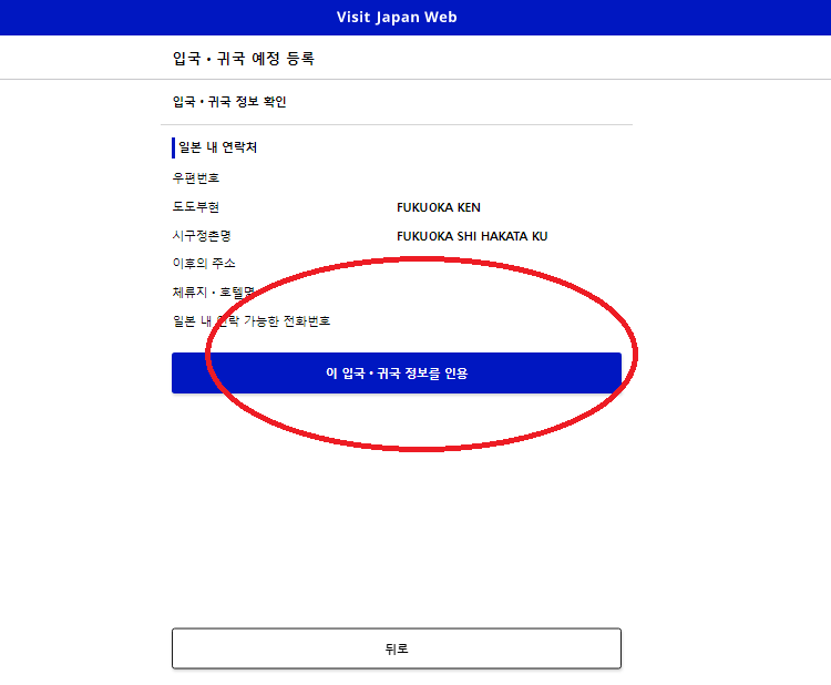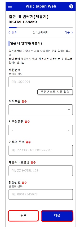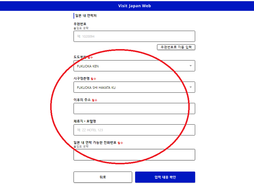 √ 일본 내 연락처(체류지) 입력 : 호텔에서 묵을 경우는 호텔 주소와 전화번호를 입력하면 됩니다. ↓ ↓