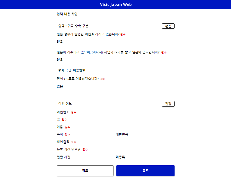 일본 입국심사 비짓재팬웹 visit japan web 등록방법(최신버전)