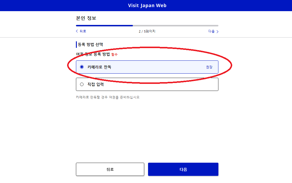 √ 여권정보 등록방법은 카메라로 판독과 직접 입력이 있습니다.