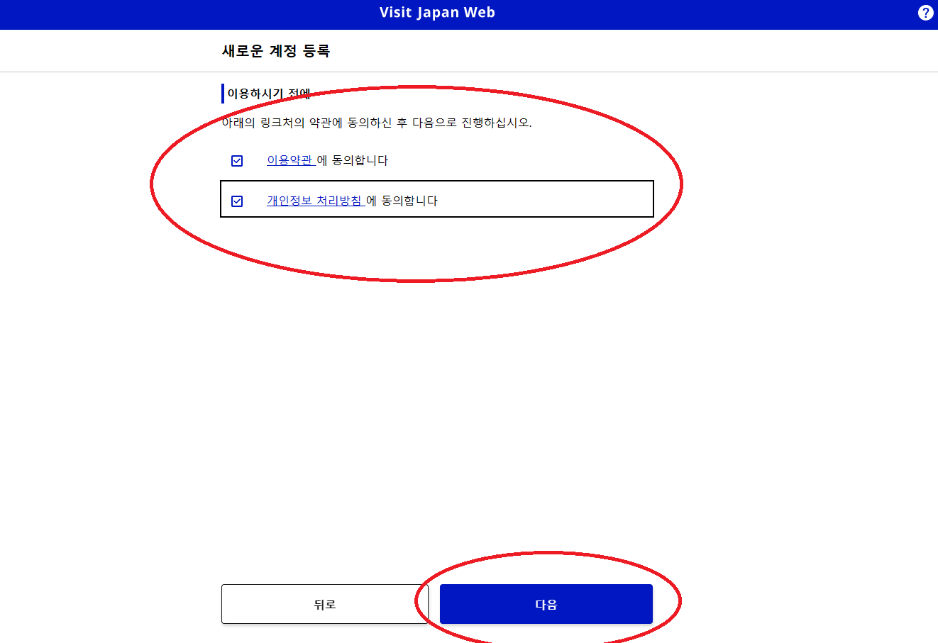√ 약관 동의 후 다음 버튼 클릭 ↓ ↓
