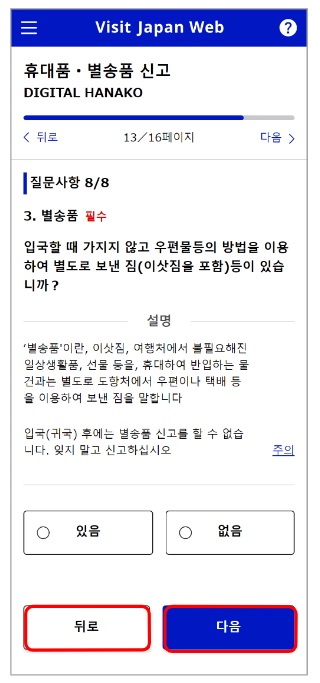 물품과 별송품이 없으시다면 없음 체크 후 다음 ↓ ↓