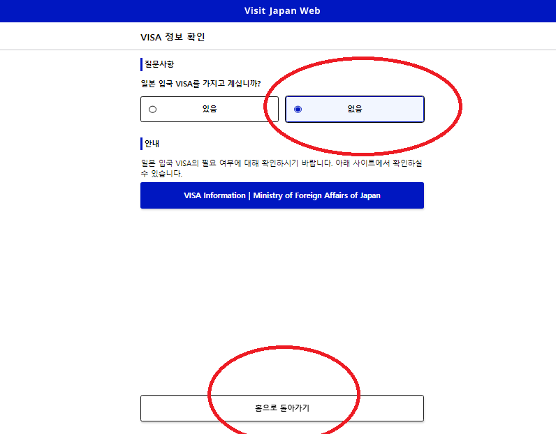 √ 일본여행비자는 90일 무비자이므로 비자정보는 없음 클릭 후 홈으로 돌아가기 ↓ ↓