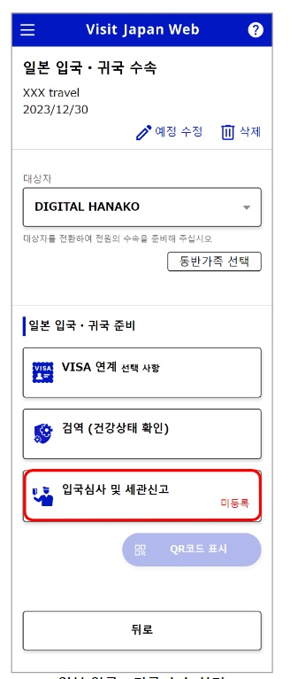 일본 입국. 귀국준비 아래쪽에 QR코드를 클릭합니다.↓ ↓