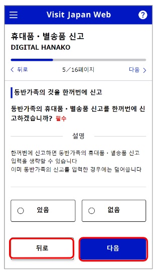 √ 휴대품. 별송품 신고 선택 후 다음 ↓ ↓