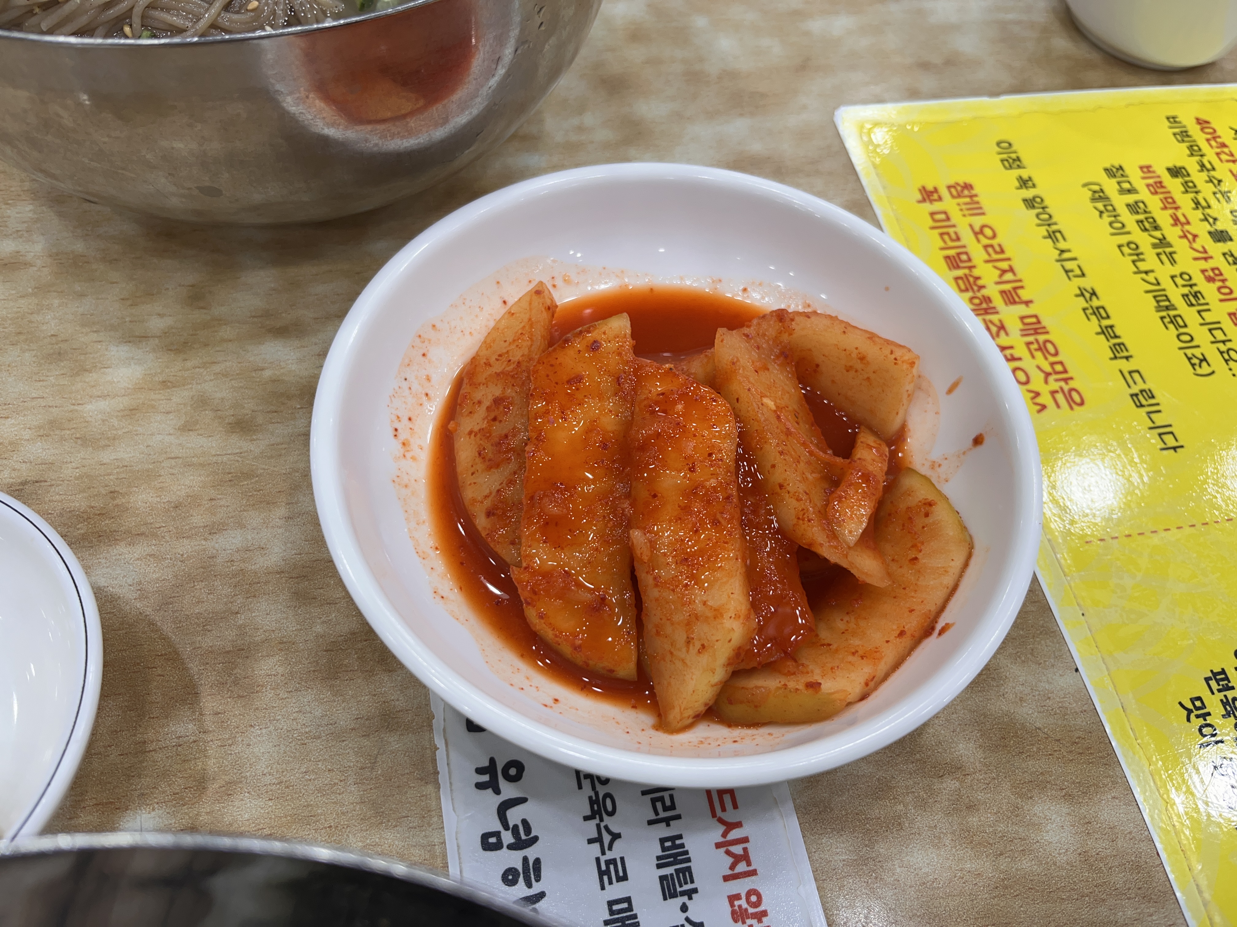보통은 냉면에 나오는 절임무로 먹었던 것 같은데