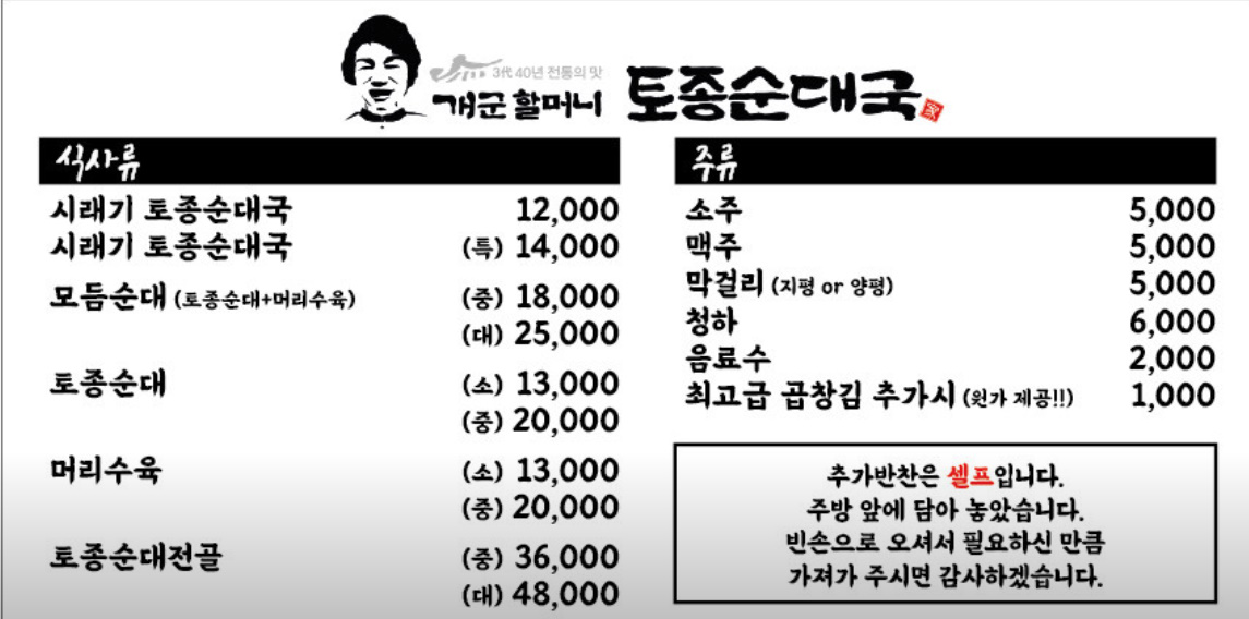양평맛집 개군할머니 토종순대국 가격,주차정보