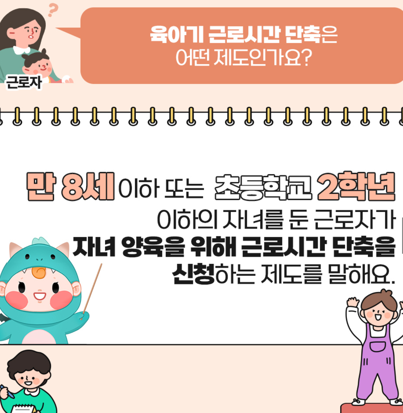 - 자녀 연령 요건: 만 8세 이하 또는 초등학교 2학년 이하의 자녀를 양육하는 근로자.
